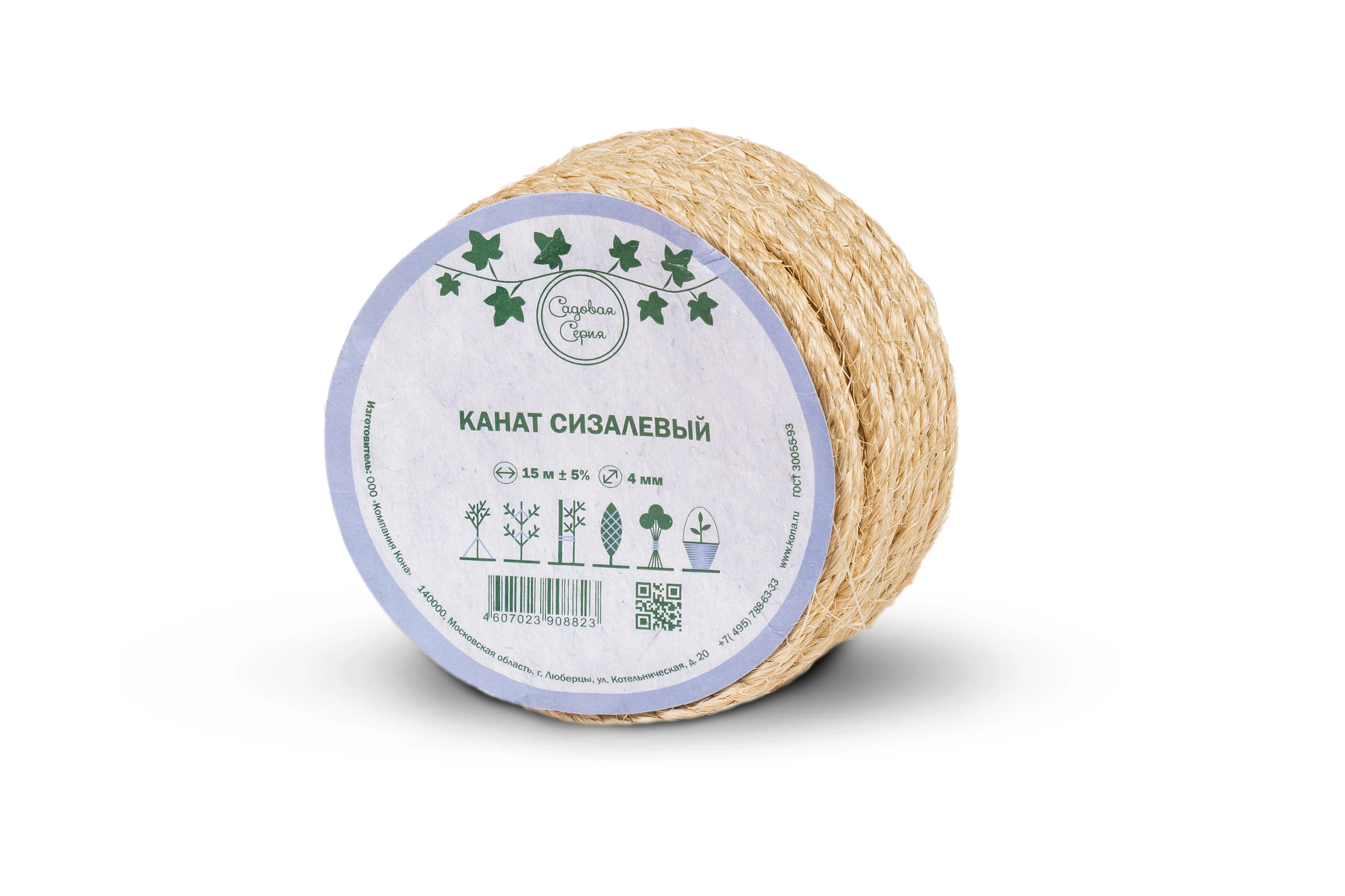 Канат сизалевый СТ тросовой свивки d. 4 мм в отрезках по 15 м (ЦН)