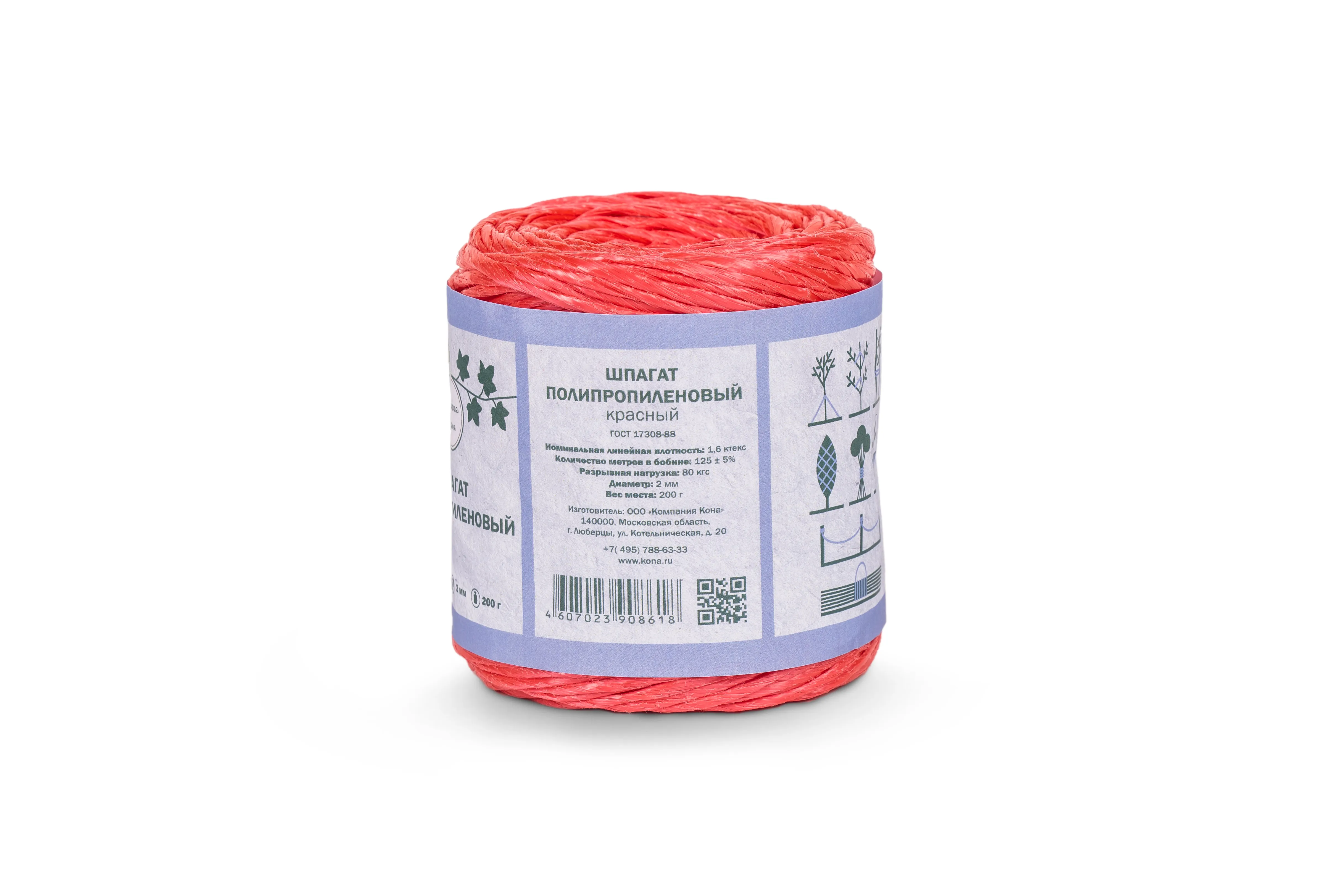 Шпагат полипропиленовый ПП 1600 текс в боб. по 0,2 кг красный (СС)